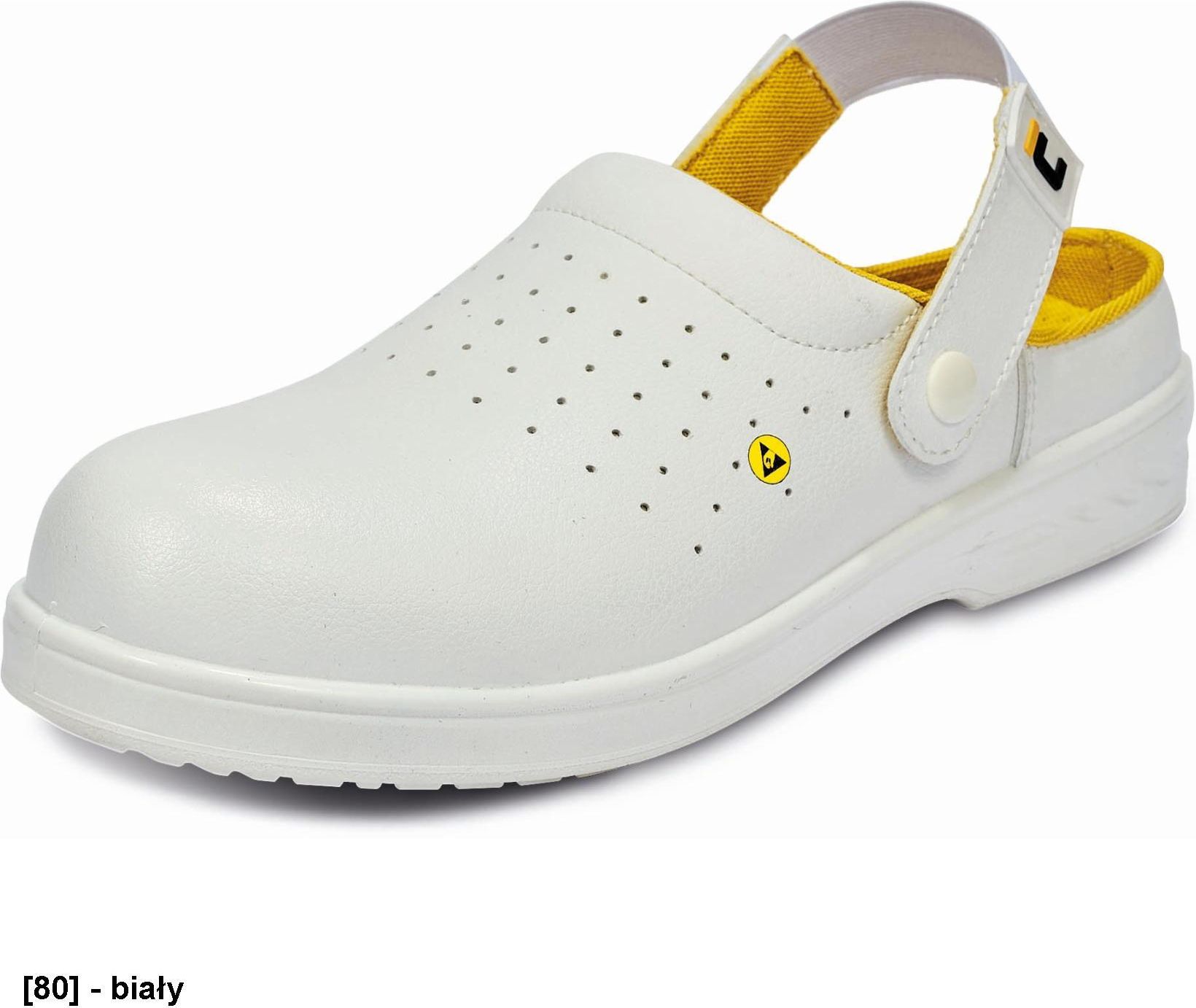 RAVEN ESD OB SRC Robocze sandały ESD z regulowanym na pięcie paskiem. Cholewka wykonana z wysokiej jakości mikroporowatego, syntetycznego materiału. Olejoodporna podeszwa z PU. Właściwości: OB Blac&White absorpcja energii w obcasie podeszwa antypoślizgowa oddychająca cholewka olejo i paliwoodporna podeszwa ochrona ESD odzieżowy obuwie antystatyczne podeszwa PU możliwość prania Marka: CERVA