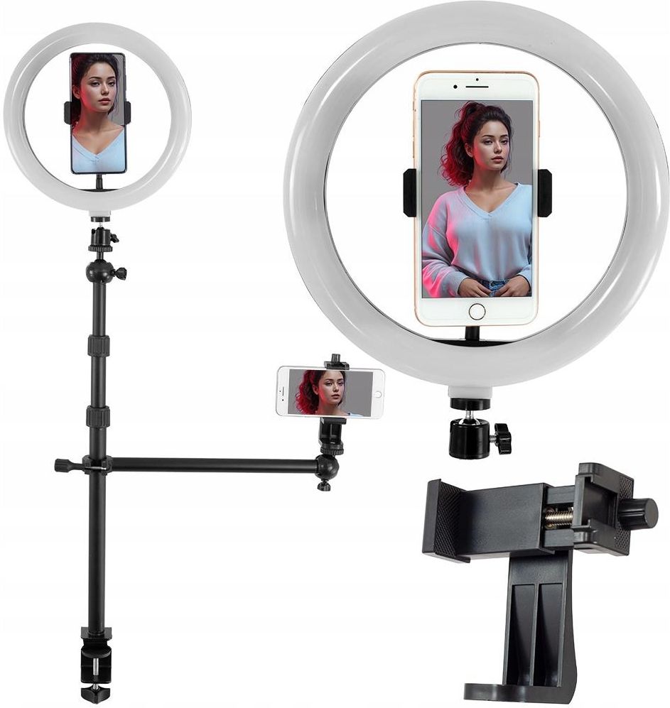 StarTune™ to idealne rozwiązanie dla każdego, kto pragnie profesjonalnie streamować w domowym studio. Ten kompaktowy i niezwykle funkcjonalny uchwyt biurkowy pozwala na jednoczesne mocowanie smartfona i lampy, co zapewnia doskonałe warunki oświetleniowe oraz wygodne ustawienie kamery. Dzięki teleskopowej regulacji wysokości, Twój sprzęt zawsze znajdzie się w idealnej pozycji, niezależnie od przestrzeni, jaką dysponujesz. Zestaw zawiera uchwyt biurkowy, lampę pierścieniową z uchwytem do smartfona i dodatkowy regulowany uchwyt do smartfona MagicMount™. Zestaw zawiera dwa uchwyty do smartfona co umożliwia filmowanie pod dwoma kątami jednocześnie. Najważniejsze cechy StarTune Uniwersalny uchwyt do streamingu domowego Przeznaczony do montażu do blatu biurka lub stołu Składa się z dwóch rur: pionowej i mocowanej do niej rury poziomej Rura pionowa umożliwia regulację teleskopową w zakresie 45-105 cm Rura pozioma, mocowana do pionowej może zostać umieszczona na dowolnej wysokości w zakresie 45-105 cm. Jej długość jest stała i wynosi 32 cm. Na szczycie rur znajdują się głowice wykonane z tworzywa sztucznego, które umożliwiają skierowanie akcesorium w pożądanym kierunku W zestawie znajduje się uchwyt do smartfona (A2S MagicMount™) W zestawie znajduje się lampa pierścieniowa RingLight™ (CGRI-10BC) Najważniejsze zalety StarTune Pomysłowy i nieskomplikowany uchwyt, który można użyć w większości występujących rzeczywiście okoliczności Pozwala niskim kosztem i względnie szybko zaaranżować studio vlogerskie Pozwala zamocować 99% istniejących smartfonów, aparatów, lamp, mikrofonów Pozwala na tworzenie własnych, dopasowanych do potrzeb konfiguracji Do czego możesz użyć StarTune studio vlogerskie, prezentacja, tutorial - element mobilnego studia TV tutorial, demonstracja pracy tworzonej na powierzchni stołu rejestracja procesu na stole dla potrzeb dokumentacji jako statyw do makrofotografii aranżowanej w warunkach domowego studio jako statyw do tworzenia animacji poklatkowych Dla kogo? Vlogerów do stabilnego nagrywania wideo Streamerów do profesjonalnych transmisji na żywo Fotografów makro do precyzyjnych zdjęć z bliska Twórców treści online do nagrywania tutoriali i prezentacji Użytkowników domowych do wideorozmów i konferencji Nauczycieli i trenerów do prowadzenia zajęć online Podcasterów do nagrywania dźwięku i wideo Youtuberów do produkcji filmów w domowym studiu Specyfikacja Produkt : Uchwyt stołowy do smartfona z lampą pierścieniową Producent: CineGEN® Symbol : CGLA-200-A2S-10BC Model : StarTune™ Waga : 1 kg Materiał : aluminium, ABS Kolor : czarny Minimalna wysokość : 47 cm Maksymalna wysokość : 106 cm Długość ramienia : 39 cm Grubość blatu : 5 cm max W zestawie Sztyca poionowa 1 szt. Sztyca pozioma: 1 szt. Głowice : 3 szt. Uchwyt do smartfona : 2 szt. Lampa pierścieniowa : 1 szt. Uwaga: aparat, mikrofon, przedstawione na zdjęciach użyte zostały w celach demonstracyjnych i nie wchodzą w skład zestawu Dlaczego nagrania studyjne wykonuje się z użyciem dwóch kamer pod różnymi kątami? Nagrania studyjne często wykonuje się z użyciem dwóch kamer pod różnymi kątami z kilku powodów: Wieloperspektywiczność: Dwie kamery ustawione pod różnymi kątami pozwalają na uchwycenie tej samej sceny z różnych perspektyw. To dodaje dynamiki i umożliwia ciekawszą wizualnie narrację, bo widz może zobaczyć różne ujęcia bez potrzeby przerywania nagrania. Płynne przejścia: Dzięki zastosowaniu kilku kamer można łatwiej przechodzić między różnymi ujęciami w trakcie montażu, co poprawia płynność wizualną. Można przełączyć się z ujęcia ogólnego na bardziej zbliżone, bez potrzeby robienia dodatkowych cięć. Minimalizacja powtórek: Jeśli nagranie jest wykonane tylko jedną kamerą, może być konieczne wielokrotne powtarzanie sceny, aby uzyskać różne ujęcia. Dwie kamery rejestrują jednocześnie różne kąty, co oszczędza czas i zmniejsza liczbę powtórek. Rejestrowanie reakcji: W przypadku np. rozmów lub wywiadów, jedna kamera może być skierowana na osobę mówiącą, a druga na słuchacza. Dzięki temu można uchwycić reakcje rozmówcy w czasie rzeczywistym, co dodaje autentyczności i emocji do materiału. Zachowanie kontekstu przestrzennego: Różne kąty ujęć pomagają lepiej zorientować widza w przestrzeni, co jest szczególnie ważne w bardziej złożonych scenach. Dzięki temu scena wydaje się bardziej naturalna i klarowna. Backup: Jeśli jedna z kamer nie zarejestruje materiału prawidłowo (np. problem techniczny, błąd kadrowania), druga kamera może posłużyć jako backup. W skrócie, dwie kamery pod różnymi kątami umożliwiają bardziej elastyczną pracę, oszczędzają czas na powtórki i tworzą bardziej dynamiczne oraz interesujące wizualnie nagranie. Chcesz dowiedzieć się więcej na temat składników zestawu? Zaznacz poniższe kody producenta i wyszukaj w google: CGLSS-200 SMART-A2S CGRI-10BC