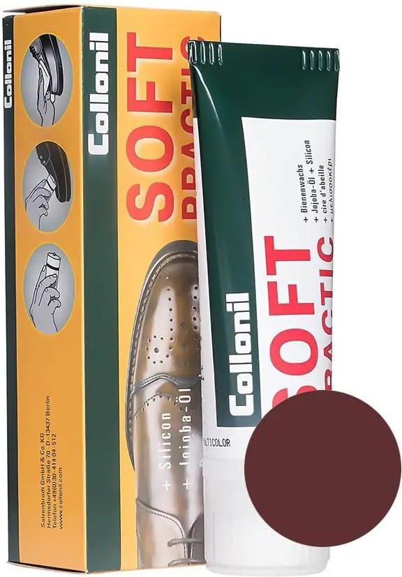 Bordowa pasta do butów Soft Practic Collonil 457. Krem do butów doskonale pielęgnuje, nawilża skórę. Odświeża kolor obuwia i pielęgnuje skóry gładkie. Zawiera składniki, które utrzymują połysk, elastyczność oraz przewiewność skóry. Posiada dużo w swoim składzie dużo barwnika. Krem aktywujący kolor Soft-Practic jest wzbogacony woskiem pszczelim, olejem jojoba i silikonami i nadaje się do wszystkich gładkich skór delikatnych i materiałów syntetycznych. Odżywia wysokiej jakości materiały i tworzy niepowtarzalny połysk.