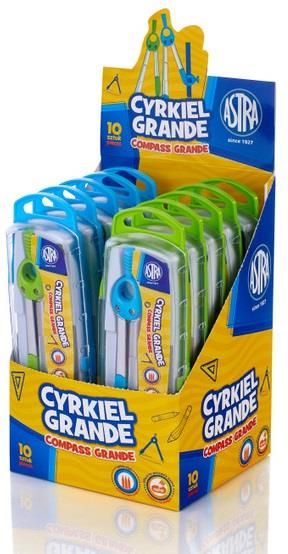 Metalowy cyrkiel Astra Grande - 4 elementy w zestawie.Posiada miejsce na wpisanie imienia.W zestawie znajdują się:- cyrkiel,- dodatkowe rysiki,- uchwyt na ołówek.