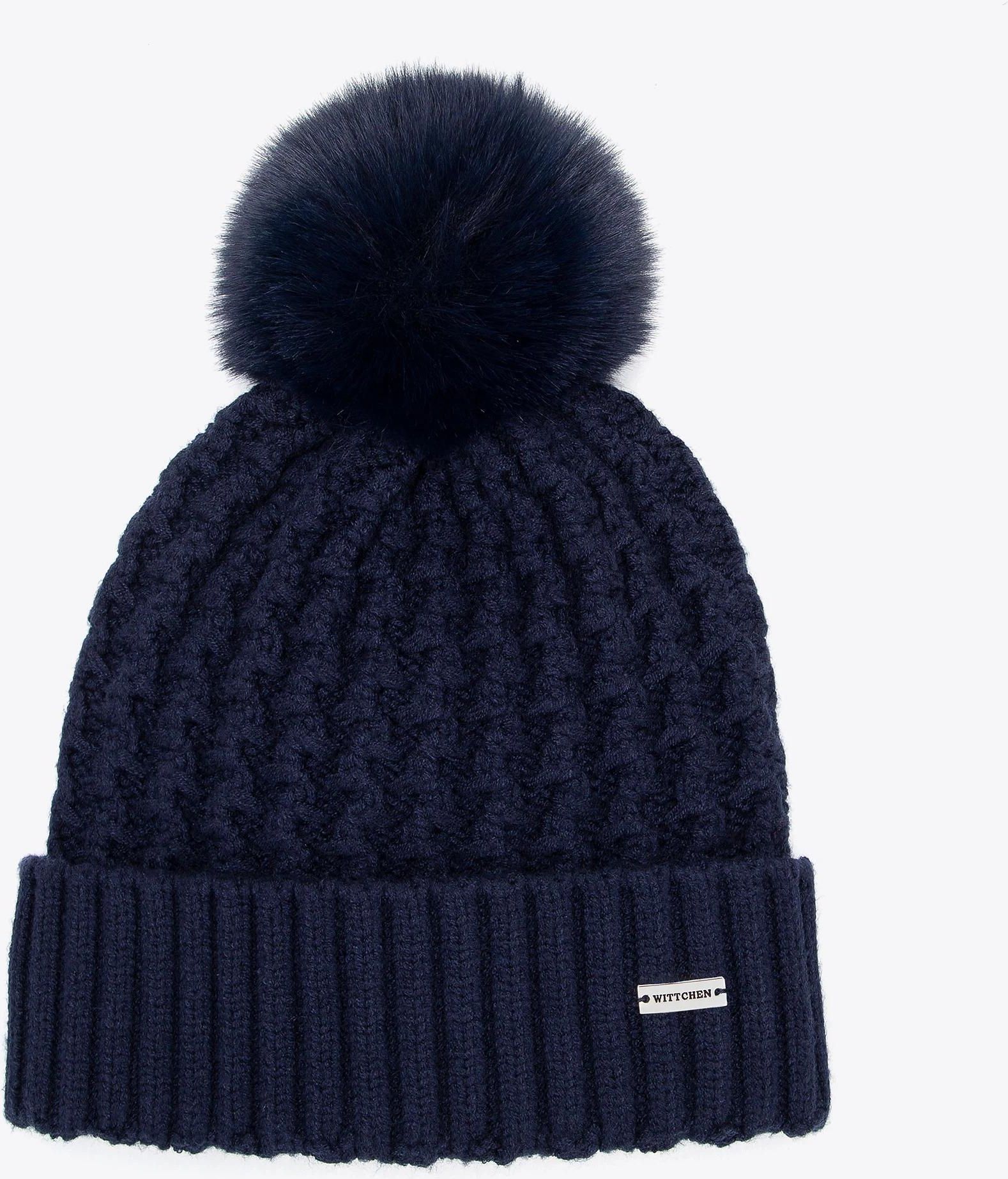 Czapka damska o splocie w drobny wzór granatowa Warszawa