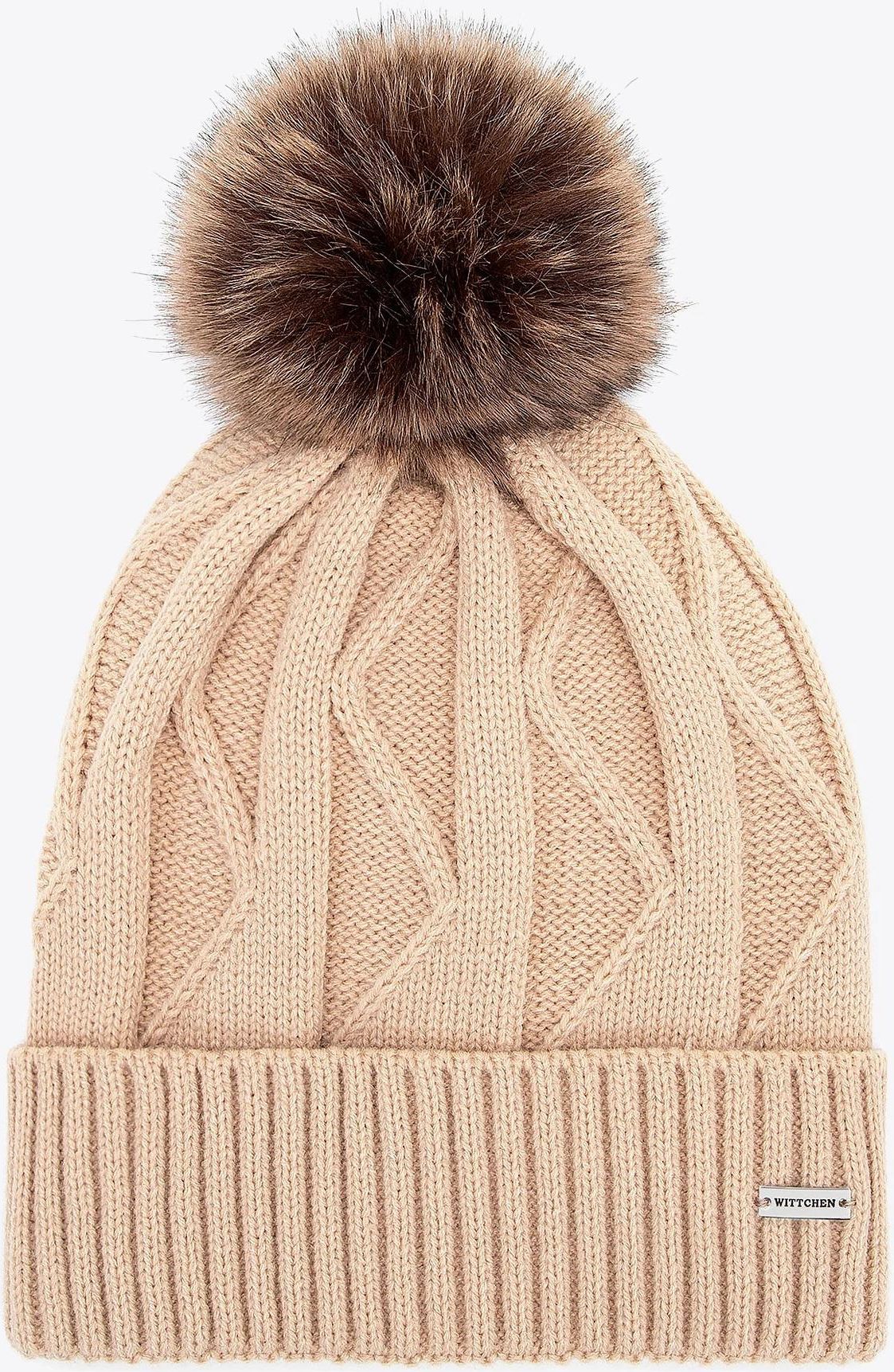 Czapka damska z kontrastującym pomponem beżowa Warszawa