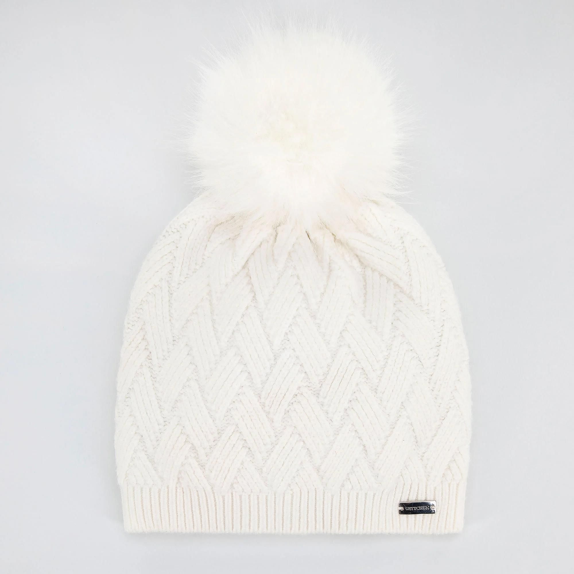 Damska czapka z dekoracyjnym splotem biała Warszawa