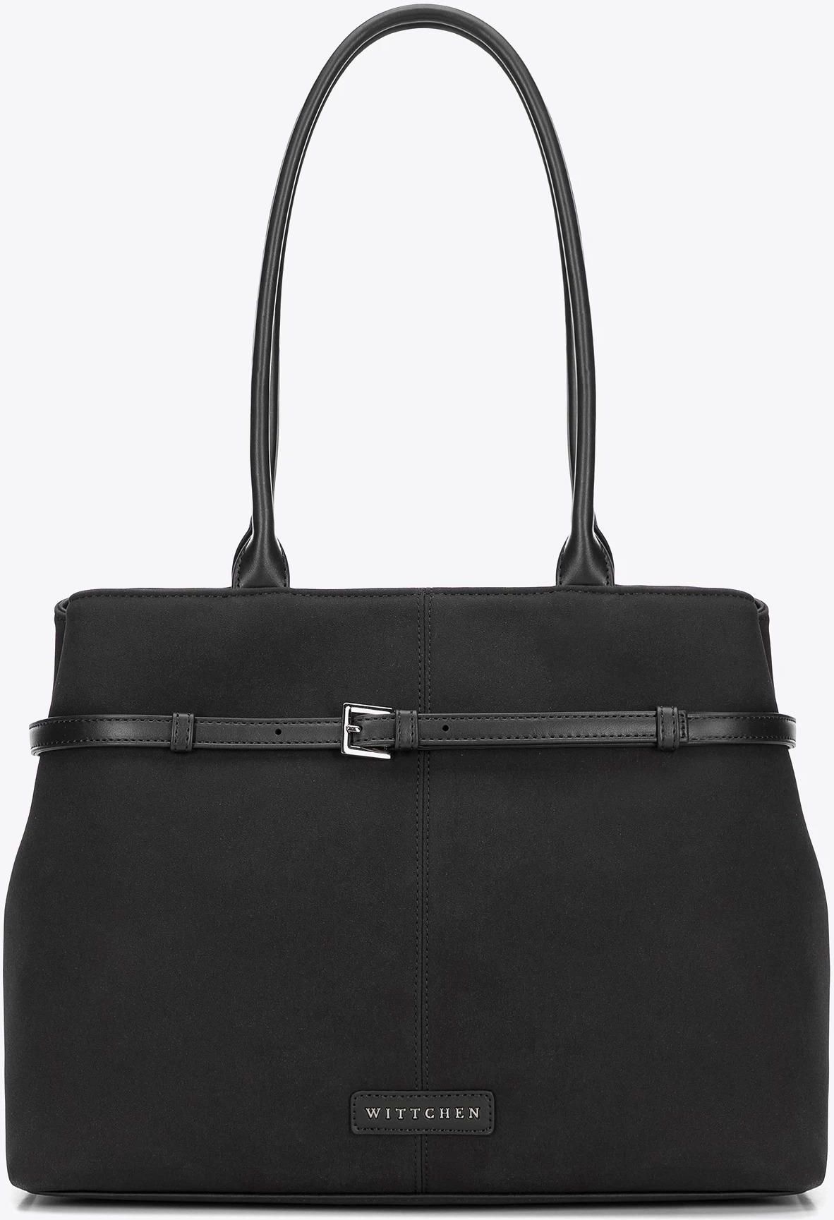 Damska shopperka z ozdobnym paskiem na froncie czarno - srebrna Warszawa