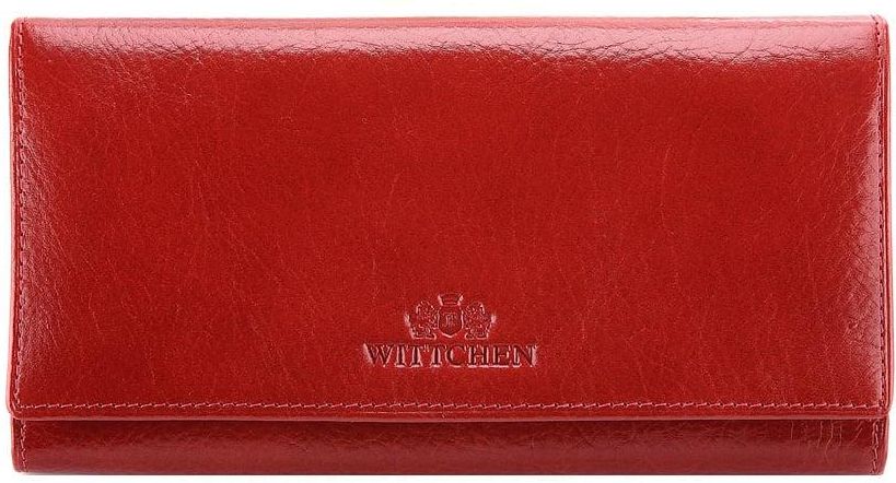 Duża portmonetka damska z kolekcji Italy. Duża, skórzana portmonetka zapinana na napę, wyposażona w pojemną, dwukomorową kieszeń na bilon to model pojemny, a zarazem bardzo elegancki. Klasyczny wzór, który nigdy nie wychodzi z mody. Wewnątrz: miejsce na bilon zamykane na bigiel; 3 kieszenie na banknoty; 5 kieszeni, w tym 1 przezroczysta; 10 miejsc na karty kredytowe. Dodatkowo: ekskluzywne opakowanie sygnowane logo WITTCHEN; ręcznie uszyta z miękkiej skóry cielęcej; pomieści dowód rejestracyjny; wymiary: 10 cm x 18,5 cm. Grubość portfela: wymiary mogą się różnić o 0,5 cm.