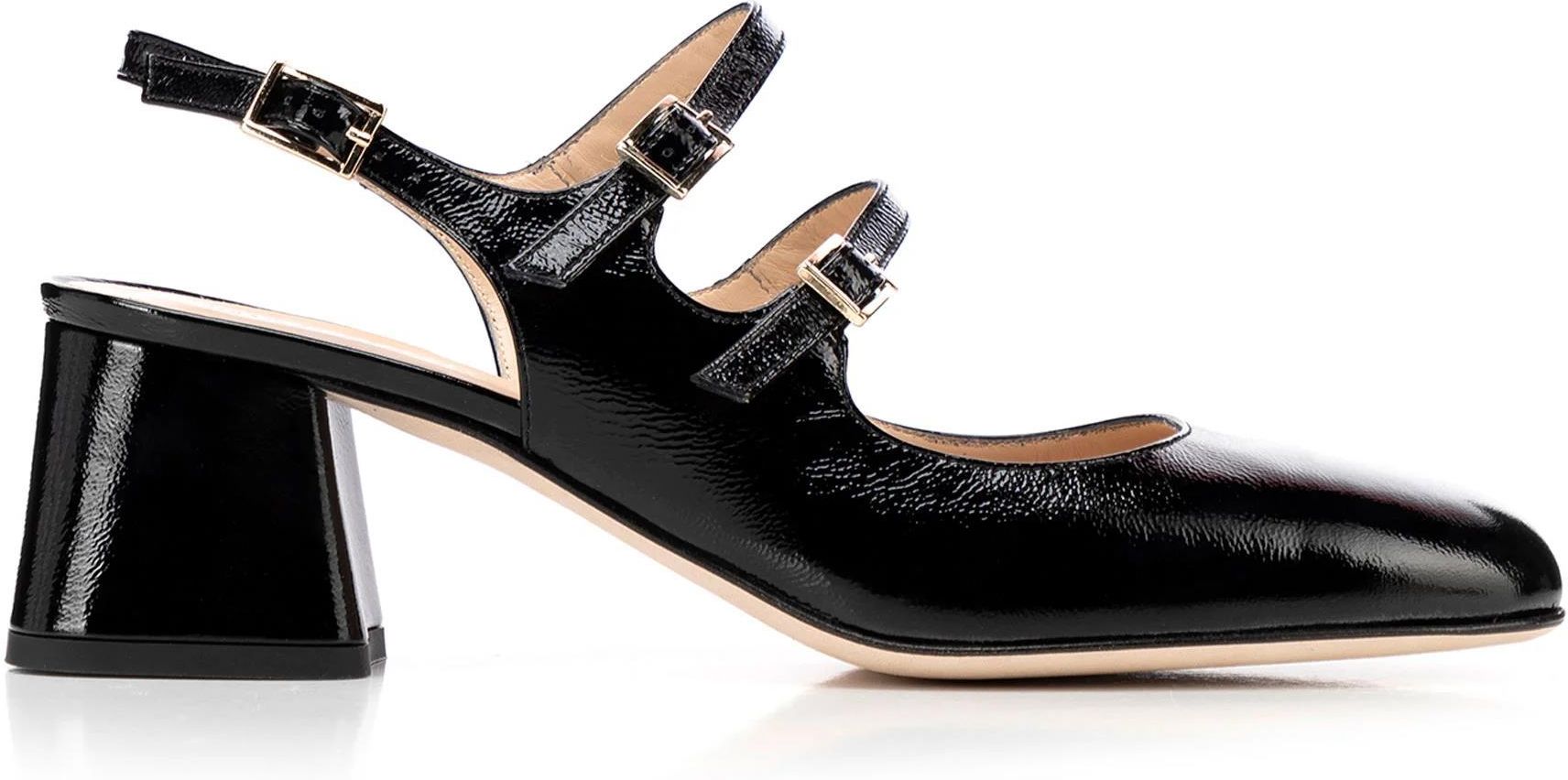 Opinie Damskie czółenka ze skóry z paskami czarne Warszawa