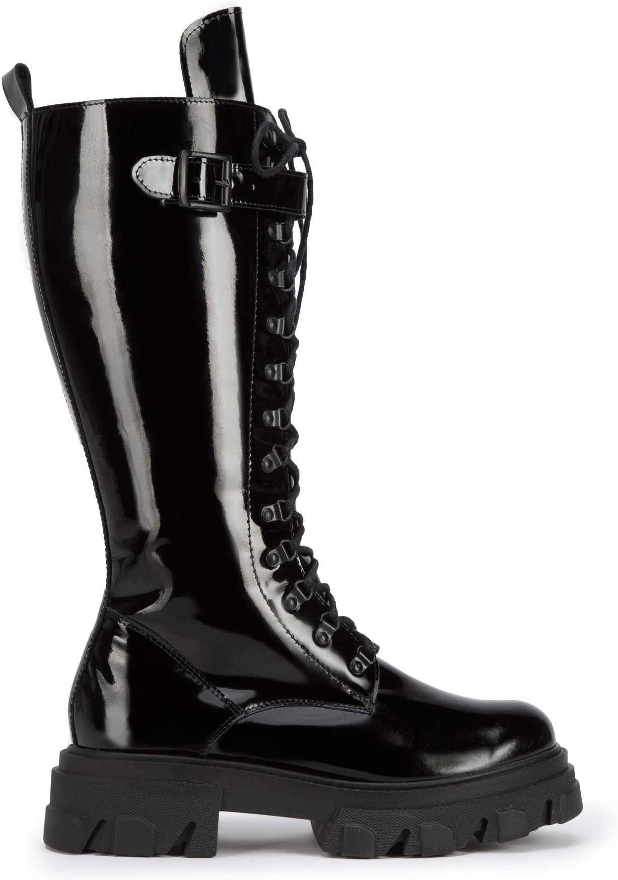 Wspaniałe buty! Dobrze wykonane, wysoka cholewka, pięknie lakierowana skóra, super, że wszystkie elementy trzymające sznurowadła, są czarne, bo nie odznaczają się tak na bucie. Gruba podeszwa i ocieplenie w środku na wysokości całej cholewki dobrze izolują przy niższych temperaturach. Do tego bardzo wygodne, stopa się nie męczy przy wielogodzinnym noszeniu. Te buty to spełnienie moich marzeń o lakierowanych, wysokich glanach!