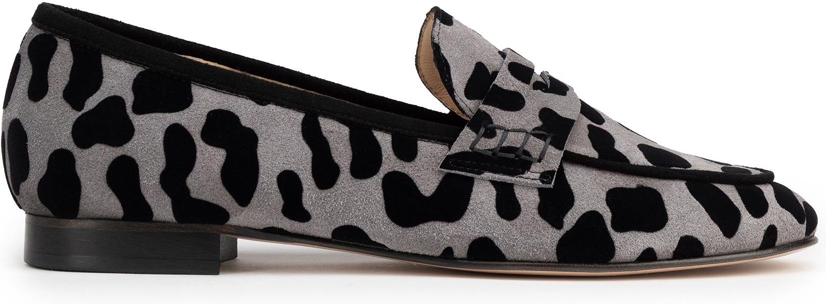 Damskie mokasyny w panterkę ze skóry naturalnej szaro - czarne| Warszawa