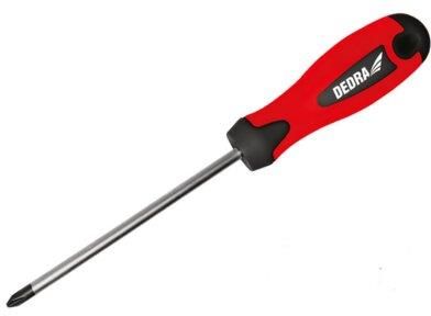 DEDRA WKRĘTAK KRZYŻOWY PHILLIPS PH2x38MM 06A014, CRV Wkrętak krzyżowy PH2x38mm. Grot wykonany został ze stali chromowanadowej, cechującej się dużą wytrzymałością i odpornością na korozję. Dodatkowo końcówka jest magnetyzowana co zwiększa precyzję i uławia pracę wkrętakami. Rękojeść profilowana, podgumowana zapewniająca dobry chwyt.Cechy charakterystyczne:Wykonany ze stali chromowowanadowej - CrV.Magnetyczna końcówka.Wyprofilowana rękojeść wykonana z TPR.Parametry:Rozmiar wkrętaka: PH2Długość wkrętaka: 38mmKod produktu: 06A014