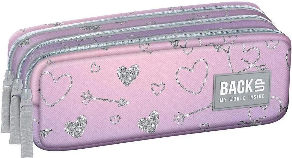 Delikatne fioletowe i różowe odcienie, które płynnie przechodzą jeden w drugi, tworząc efektowny gradient kolorów. Na tle tych pięknych barw migoczą srebrne, świecące serduszka. To połączenie nowoczesnego designu, romantyzmu i energii. Całość uzupełniają szare akcenty. Trzykomorowy piórnik Backup …