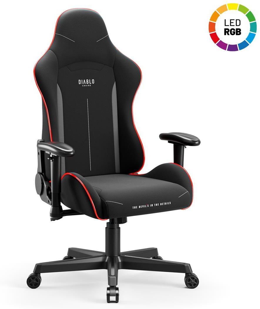 Z fotelem gamingowym LED Diablo X-Starter nie musisz się ograniczać. Krzesło jest niezwykle wygodnym meblem do grania, a jego wygląd zwali z nóg wszystkich Twoich kumpli.Dzięki oświetleniu RGB uzyskasz efekt, który przejdzie najśmielsze oczekiwania. Świecące kolory krawędzi fotela wprowadzą niezwykły klimat do Twojego gamingowego setupu.Wbudowane oświetlenie LED, to wizualna perfekcja, gdy świeci robi efekt WOOW!Pasek podświetla się w 7 kolorach i ma kilka trybów, co daje możliwość dopasowania fotela do swojego humoru lub innych gadżetów w zasięgu.Oświetleniem można sterować dzięki dedykowanemu pilotowi.Pasek RGB można zasilać na trzy sposoby: dzięki wbudowanemu kablowi USB, za pośrednictwem power banku lub na baterię AA. Wszystkie kable są schowane dzięki specjalnym kieszonkom, dzięki czemu będzie zachowany porządek.Kubełkowy kształt fotela posiada specjalne wyprofilowania, które wspierają sylwetkę i zapewniają maksimum komfortu.Fotel wypełniony jest elastyczną pianką HR, która się nie odkształca. Fotel przez długi czas będzie wyglądał jak nowy.Siedzisko dodatkowo wyposażone jest dodatkową warstwę wypełnienia technologią Comfort Layer™, co oznacza, że fotel zapewnia dodatkową wygodę podczas siedzenia.Tapicerka fotela, to niezwykle miła, trwała i oddychająca tkanina SoftTouch™.Przy modelu X-Starter zastosowano szereg technologii, dzięki którym wielogodzinne siedzenie nie będzie uciążliwe. Zastosowany mechanizm Tilttech™ Butterfly precyzyjnie przesuwa siedzisko w górę i w dół, a technologia Tilttech™ Gear jest odpowiedzialna za pochylenie oparcia nawet do 160°. Natomiast dzięki systemowi Tilttech™ Swing fotel wprowadzi Cię w przyjemne bujanie.Podłokietniki modelu X-Starter regulowane są w dwóch płaszczyznach - góra, dół oraz wychylenie prawo-lewo.Nakładki podłokietników są wyprofilowywane i wykończone miękkim materiałem, dzięki czemu łokcie zyskają wsparcie i Twoja pozycja będzie niezwykle komfortowa.Dzięki kółkom PFC™ 360 fotel przemieszcza się lekko i cicho w sposób bezpieczny dla podłogi. Fotel można doposażyć w poduszę lędźwiową, która dodatkowo wesprze Twój kręgosłup i zapewni prawidłową postawę.Do fotela można jeszcze dobrać podnóżek z serii X-Starter, który pozwoli na odciążenie nóg i zajęcie wygodnej pozycji.Maksymalny udźwig fotela deklarowany przez producenta, to 140 kg.Wymiary:Model objęty jest 2-letnią gwarancją w systemie od drzwi do drzwi dla Państwa pełnego komfortu.Produkt dostarczymy do Państwa BEZPŁATNIE pod wskazany adres na terenie całego kraju.Co WAŻNE: zgodnie z prawem i naszym regulaminem mają Państwo pełne prawo do zwrotu nieużywanych towarów, jeśli nie spełnią one Państwa oczekiwań.