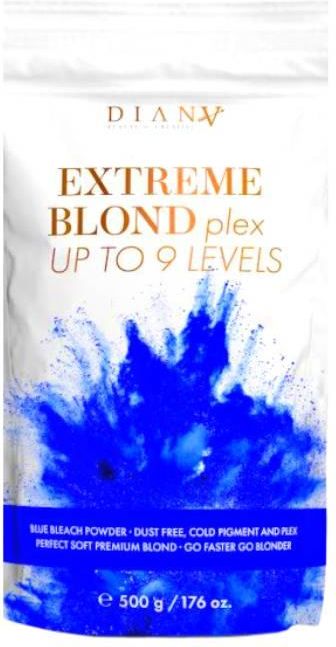 Diana Beauty Extreme Blond, Rozjaśniacz Do 9 Tonów z Plexem Bezpyłowy rozjaśniacz w proszku do 9 tonów z ochronnym systemem PLEX. Właściwości: Rozjaśnienie do 9 tonów. Niebieski pigment Anti Yellow - zapewni włosom chłodny odcień i pozwoli uniknąć niechcianych żółtych odcieni na rozjaśnianych …