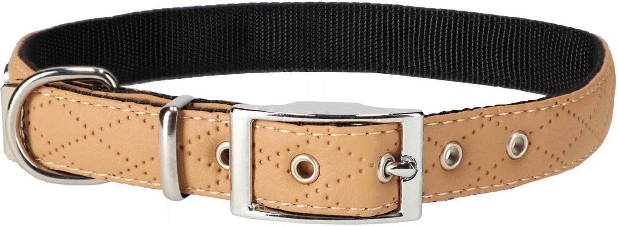 OBROŻA WEGAŃSKA TERRA SAND Z ZAPIĘCIEM METALOWYM solidne, metalowe zapięcie, wysokiej jakości imitacja skóry, elegancki, pikowany materiał, podszycie od środka z poliamidu, miękki, a zarazem wytrzymały materiał, produkt wegański, kolor beżowy. INDEKS: 14261 Obroża dla psa z serii Terra wykonana …