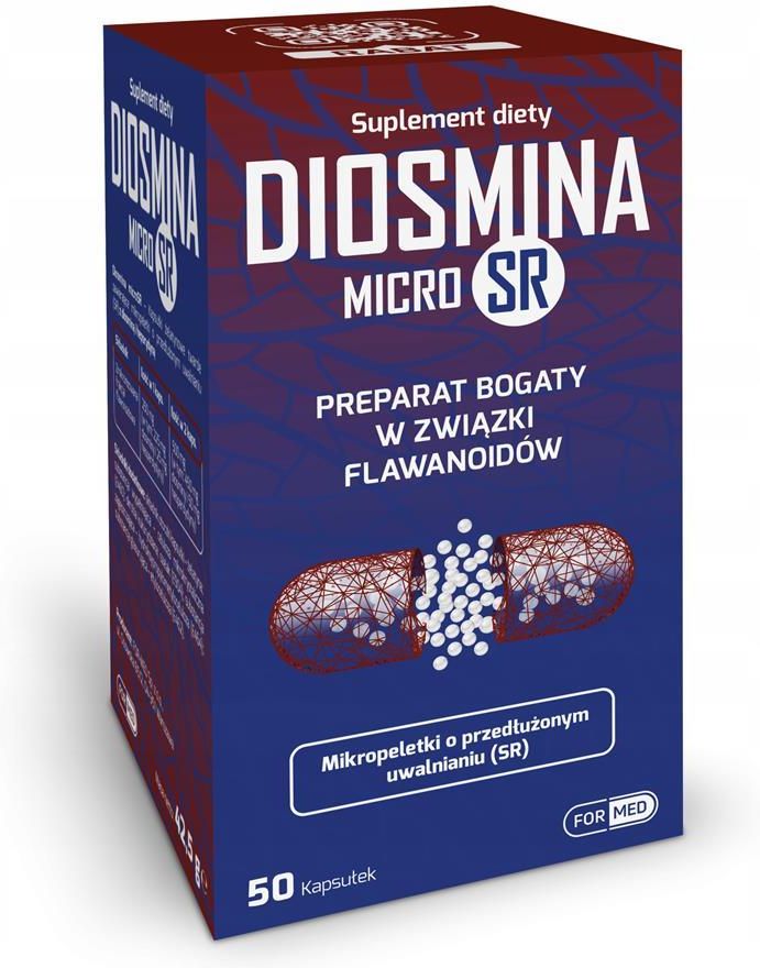 Kapsułki żelatynowe twarde zawierające mikropeletki z diosminą i hesperydyną o przedłużonym uwalnianiu (SR) Diosmina microSR to zaawansowany suplement diety zawierający diosminę w formie mikropeletek o przedłużonym uwalnianiu. Nasz produkt został opracowany specjalnie dla osób, które chcą wspierać zdrowie swoich nóg i poprawić krążenie krwi. Diosmina jest naturalnym składnikiem pochodzenia roślinnego, który pomaga wzmocnić naczynia krwionośne i zmniejszyć uczucie ciężkości i obrzęku nóg. Dzięki innowacyjnej formule mikropeletek, diosmina jest stopniowo uwalniana w organizmie, co zapewnia stałe i równomierne dostarczanie tego składnika przez cały dzień. Wybierz Diosminę microSR, aby cieszyć się lepszym zdrowiem nóg i poprawić swoje samopoczucie. Dla kogo dla osób z żylakami kończyn dolnych dla osób z żylakami odbytu (hemoroidy) dla osób z uczuciem ciężkości nóg, w szczególności w lecie dla osób ze skurczami łydek dla osób z niewydolnością żylną kończyn dolnych Skład Zawartość w jednej kapsułce 250 mg (w tym: 225 mg diosminy i 25 mg hesperydyny) w 2 kapsułkach 500 mg (w tym: 450 mg diosminy i 50 mg hesperydyny) Zmikronizowana frakcja flawonoidowa Nie zawiera: - produkt bezglutenowy - nie zawiera laktozy Sposób użycia 2 kapsułki dziennie Diosmina microSR. Kapsułki należy popić odpowiednią ilością wody. Przedłużone uwalnianie Technologia mikropeletek pozwala na rozproszenie dawki na wiele mikro dawek. Peletki mogą być powlekane różnego rodzaju polimerami, które pozwalają na regulowanie uwalniania substancji aktywnych. Dzięki temu można osiągnąć szereg korzyści dla pacjenta: redukcję ryzyka podrażnienia układu pokarmowego przez substancję aktywną zwiększenie wchłaniania ukrycie zapachu i smaku lokalne zmniejszenie dawek substancji aktywnych