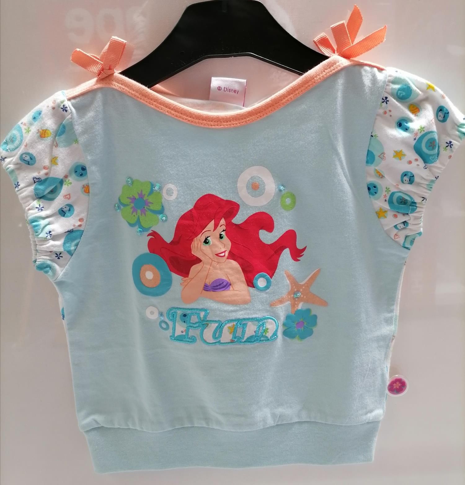 Bluzka Disney Arielka mała syrenka z frotką do włosów biało - niebieska Rozmiar 6 lat wzrost 116 cm od ramienia do dołu 40 cm od pachy do pachy 35 cm
