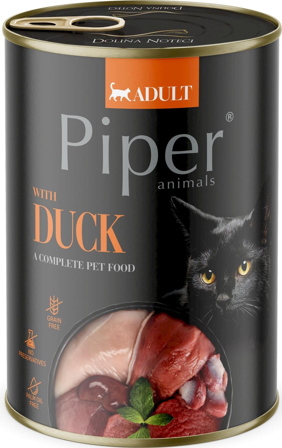 PIPER Animals Adult Mokra Karma Dla Kota Kaczka 400g Nr katalogowy: 11802485 Kaczka bez zbóż dla dorosłych kotów w puszce Cechy puszki DOLINA NOTECI PIPER Animals Adult with Duck: Karma dla dorosłych kotów/kotek wszystkich ras Z Kaczką - pokrywa w 100% dzienne zapotrzebowanie na wszystkie składniki …