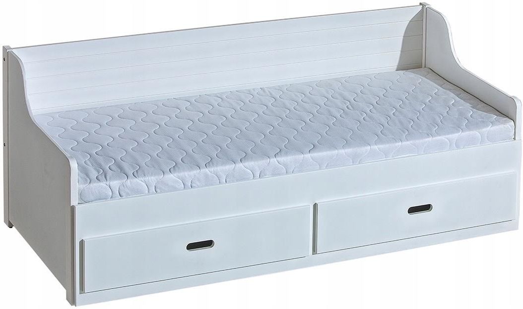 łóżko podwójne Szymon, bez materacy kolorystyka: biały + elementy drewniane: sosna barwiona na biel wymiary: długość: 206 cm wysokość: 81 cm głębokość: 90 cm, po rozłożeniu 167 cm pow. spania : 80x200cm, po rozłożeniu 160x200 cm zalecana wysokość materacy to 8 cm materac na wysokości 34 cm wymiar szuflady w środku: 85 szer. x 16 wys. x 68 gł. materace 80x200 dostępne na naszych aukcjach charakterystyka łóżka: łóżko wykonane z płyty MDF lakierowanej z elementami z drewna litego stelaż z drewnianych listewek spód szuflad - płyta HDF 2mm szuflady na pościel wysuwane na prowadnicach kulkowych maksymalne obciążenie jednej szuflady to 5 kg maksymalne udźwig jednego poziomu łóżka to 90 kg łóżko dolne wysuwane na kółkach produkt polski do samodzielnego montażu - pakowany fabrycznie w paczkach wraz z instrukcją montażu