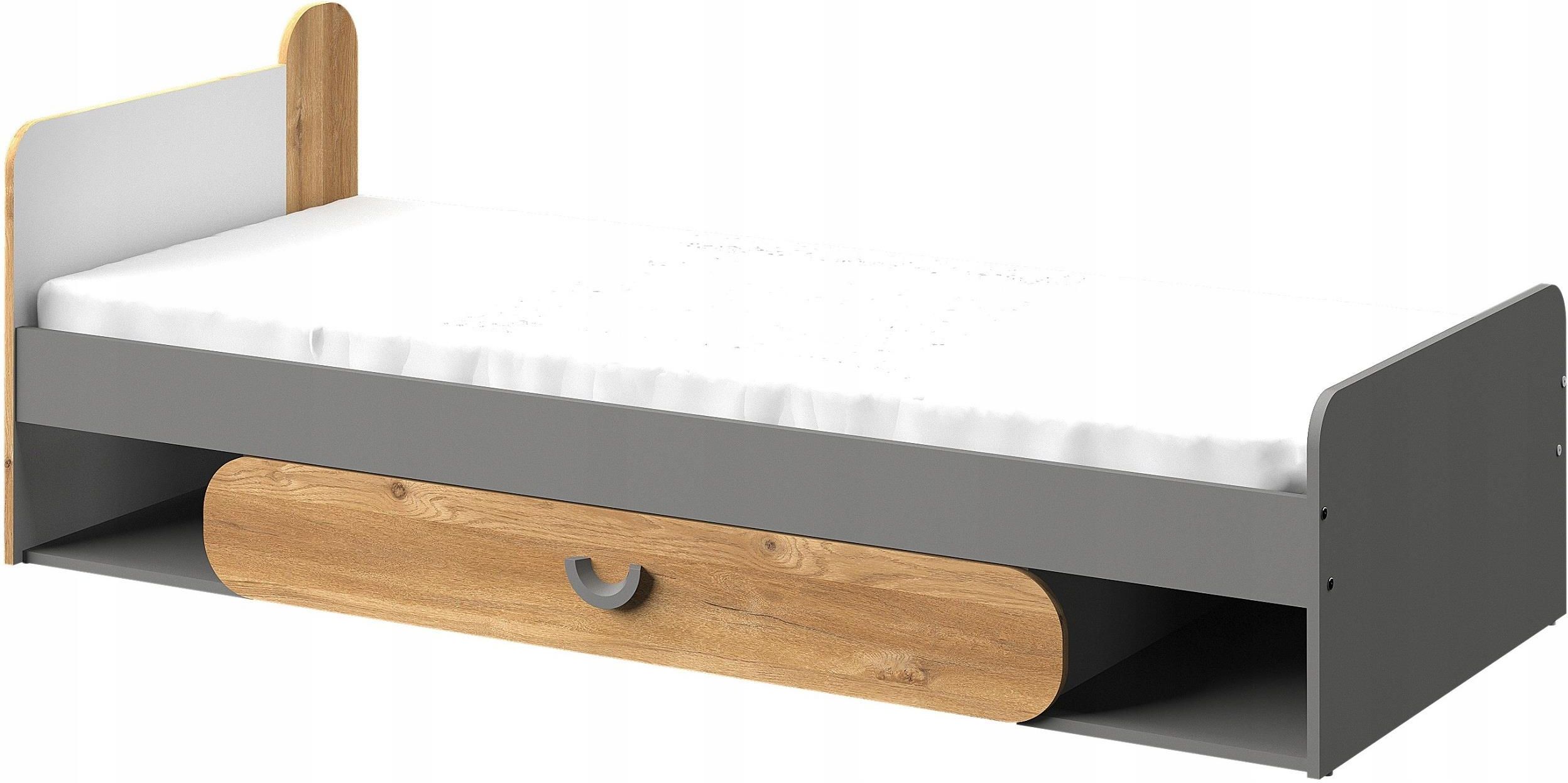 łóżko Carini 11, bez materaca kolorystyka : grafit jasny + biały brylantowy + dąb nash wymiary : szerokość 84 cm długość 198 cm wysokość 69,7 cm powierzchnia spania 80x195 cm materace 80x195 dostępne na naszych aukcjach specyfikacja systemu Carini system składa się z : szaf, regałów, komody, biurka, półek, szafki nocnej, łóżka płyta laminowana o grubości 16mm ściany tylne płyta HDF krawędzie oklejone okleiną PCV prowadnice szuflad kulkowe uchwyty, nóżki z tworzywa sztucznego produkt polski do samodzielnego montażu - pakowany fabrycznie w paczkach wraz z instrukcją montażu