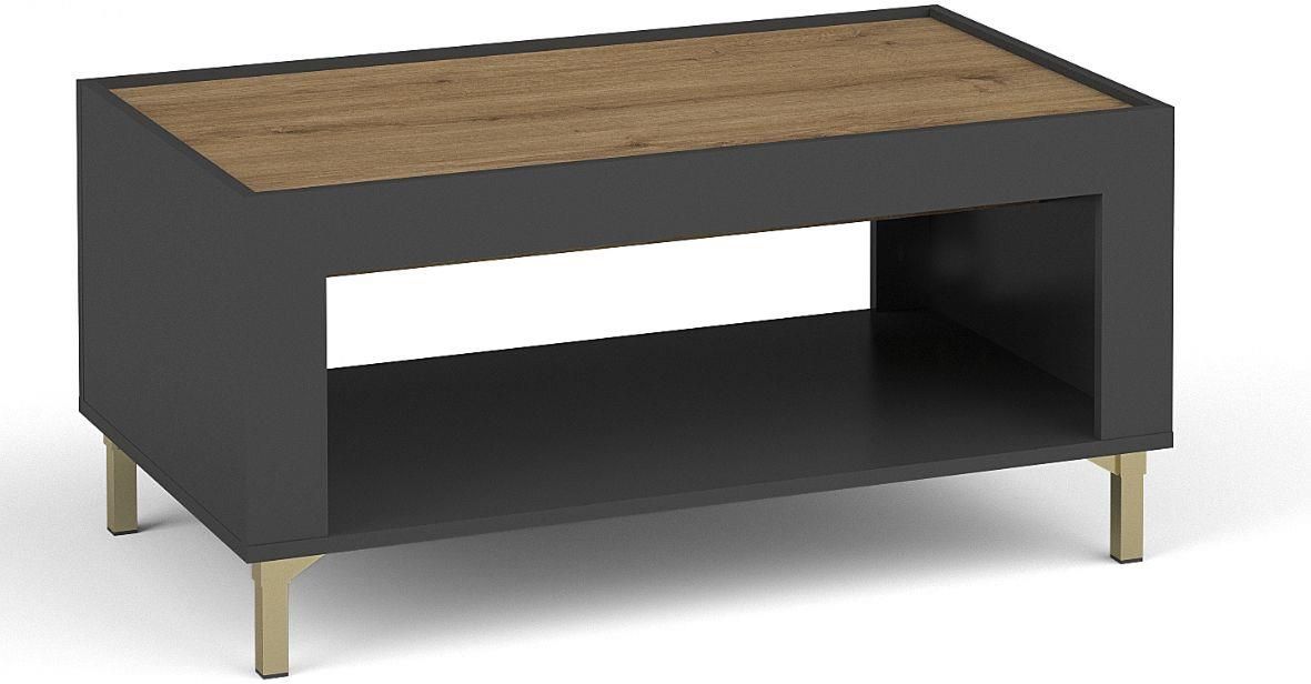 Stolik kawowy z kolekcji Mossa MO9 charakteryzuje się lekko obniżonym blatem, co dodaje mu subtelnego, nowoczesnego charakteru.Pod blatem znajduje się półka, idealna do przechowywania książek, magazynów czy innych dekoracyjnych przedmiotów, co pozwala na utrzymanie porządku.Stolik Mossa stoi na wysokich nóżkach z tworzywa sztucznego w kolorze złotym, co dodaje mu lekkości.Czarny kolor mebla z blatem w kolorze dąb whisky doda wnętrzu elegancji i je ociepli.Stolik jest jednym z elementów kolekcji Mossa, dzięki pozostałym elementom kolekcji zaaranżujesz całą przestrzeń.Wymiary:Produkt objęty jest 2-letnią gwarancją.Produkt dostarczymy do Państwa BEZPŁATNIE pod wskazany adres na terenie całego kraju.Co WAŻNE: zgodnie z prawem i naszymregulaminemmają Państwo pełne prawo do zwrotu nieużywanych towarów, jeśli nie spełnią one Państwa oczekiwań.