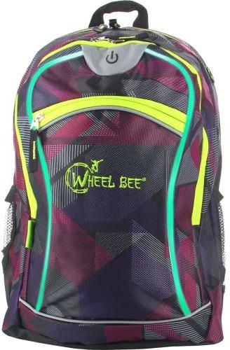 Innowacyjne plecaki WHEEL BEE® są opracowywane i projektowane w Europie. Oprócz wysokich walorów użytkowych i ogólnych cech plecaków szkolnych i rekreacyjnych, plecaki WHEEL BEE® znacznie zwiększają widoczność i bezpieczeństwo dzięki wbudowanemu oświetleniu LED. To innowacja na rynku plecaków i wprowadzenie zupełnie nowego wymiaru bezpieczeństwa ruchu drogowego. Materiał: Poliester 600D - podwójnie gumowane wzmocnienie wewnętrzne zapewnia wodoodporność i trwałość Wymiary: 46x32x20 cm Pojemność: 30L Zasilanie: 2 baterie guzikowe CR2032 (w zestawie) Kolory: niebieski, zielony, biały Cechy: ZINTEGROWANE ŚWIATŁO LED dla lepszej widoczności i bezpieczeństwa | PORT USB z kablem | Wyjście słuchawkowe | Odblaskowe paski | Wysokiej jakości zamki błyskawiczne SBS | 3 duże przegródki, 1 mniejsza przegródka, 3 ukryte kieszenie »zabezpieczające przed kradzieżą« | Dział laptopów | 2 kieszenie na powerbank | Organizer akcesoriów | Twarde i wyściełane plecy z systemem cyrkulacji powietrza | Wyściełany dół | Wyściełane szelki | Ramiączka z regulacją wysokości | Wzmocniony uchwyt na plecak | Paski biodrowe | Pasy piersiowe z GWIZDKIEM BEZPIECZEŃSTWA | Kieszeń na deskorolkę/ubranie | Paski boczne do ubrania | Kieszenie boczne | Łatwa obsługa zamka błyskawicznego