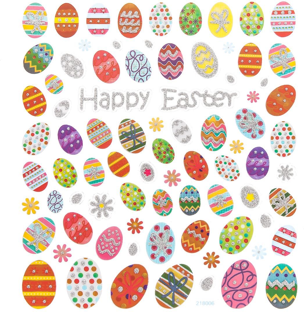 Arkusz kolorowych naklejek z motywem kolorowych pisanek wielkanocnych. Doskonałe do zdobienia projektów scrapbookingowych,kartek okolicznościowych, pakowania prezentów, a także do wszelkiego rodzaju dziecięcej aktywności twórczej. Format arkusza: 15 x 17 cm W opakowanie jest: 80 sztuk