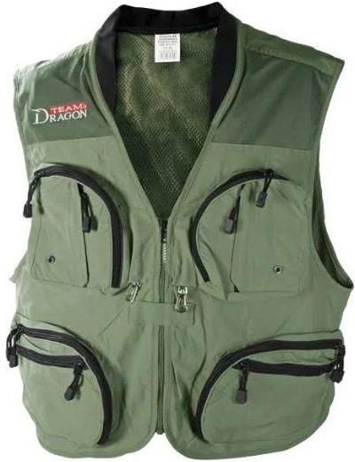 W kamizelkach Dragona zastosowaliśmy specjalny rodzaj tkaniny o nazwie Nylon Taslan Fabric™, która poza właściwościami odprowadzania wilgoci ma kilka nieocenionych zalet. Jest bardzo lekka, łatwa w czyszczeniu, a co najważniejsze-bardzo odporna na przetarcia. W dolnych, najczęściej używanych kieszeniach na pudełka zastosowaliśmy podwójne zamki dwukierunkowe. Funkcjonalnym dodatkiem są karabińczyki na sprężynowych linkach, które służą do zaczepienia peana, obcinaczek lub miarki.
