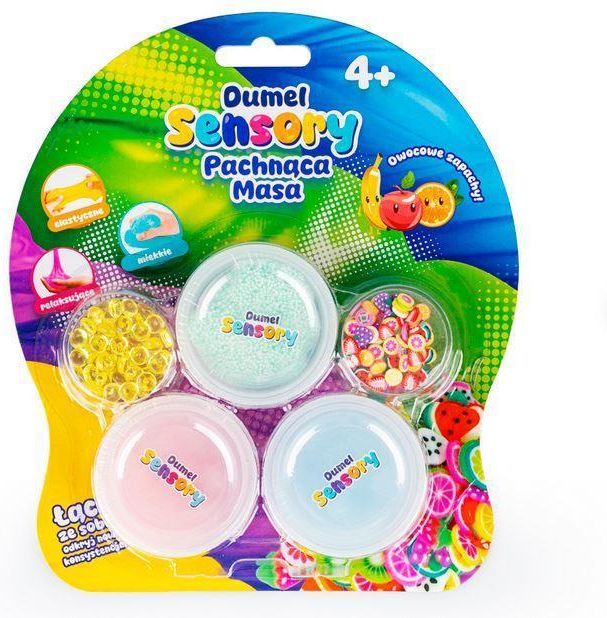 Masa radości o zapachu owoców! Odkryj zestaw zapachowych mas, stworzonych do kreatywnej i sensorycznej zabawy. Zestaw tworzą trzy kubeczki z masą, różniącą się kolorem. Dwie z nich, o nazwie slime goo, mają konsystencję żelową, a jedna modeling foam, ziarnistą. Łącz masy ze sobą i odkrywaj nowe kolory oraz faktury! Poza masami, w zestawie znajdziesz także akcesoria do zabawy, w postaci posypki w kształcie owoców oraz koralików. Pamiętaj, że raz połączonych ze sobą mas nie da się już rozdzielić, dlatego najlepiej najpierw bawić się pojedynczymi masami, a dopiero gdy dobrze się je pozna, wtedy połączyć je ze sobą, uzyskując w ten sposób nową masę. Dobrym rozwiązaniem jest też zmieszanie ze sobą jedynie niewielkiej ilości każdej z mas, co pozwoli na uzyskanie równocześnie mas o różnych kolorach i fakturach. Aby zapobiec wysychaniu mas, pamiętaj, by po zakończeniu zabawy schować je do szczelnie zamkniętego opakowania lub woreczka. Cechy produktu masa pachnie owocowo; zabawa polega na łączeniu ze sobą mas i dodawaniu do nich dołączonych akcesoriów, w celu odkrywania nowych konsystencji i faktur; w zestawie 3 kubeczki z masą o różnych konsystencjach i kolorach (2 x slime goo, 1 x modeling foam), posypka w kształcie owoców i koraliki; raz połączonych ze sobą mas nie da się już rozdzielić; aby zapobiec wysychaniu mas, po zabawie należy schować je do szczelnie zamkniętego opakowania lub woreczka; wiek: 4+. EAN: 5905692306230