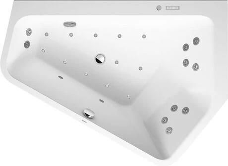 DURAVIT 760395000CE1000 Whirlwanne Paiova 5 1770x1300mm mit nahtl.Acrylverkl.u.Gestell, Ecke r. ???? Pięciokąt, 1770x1300 mm, Prawy róg, Bezszwowa obudowa akrylowa, Biały, Akryl sanitarny, Liczba oparć: 2, Ze wspornikiem, Z zestawem przelewowo-odpływowym, Umiejscowienie odpływu: Środek, Umiejscowienie przelewu: Środek, Pojemność: 205 l, Głębokość wewnętrzna: 440 mm