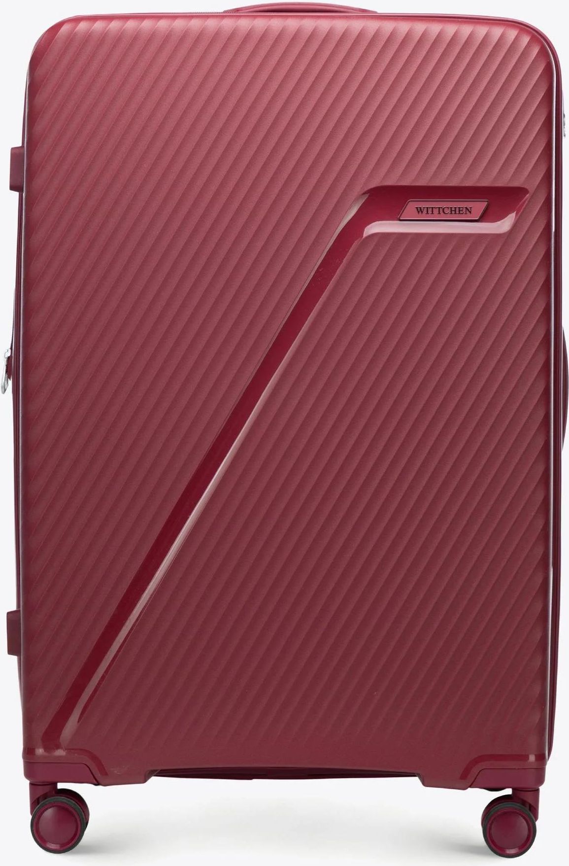 Opinie Duża walizka z polipropylenu w ukośne pasy bordowa Warszawa