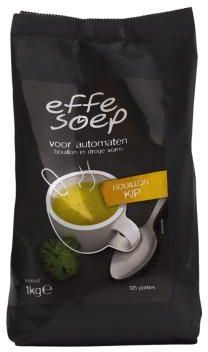 Przedstawiamy „Effe Soep” – markę znaną z bogatej historii produkcji zup. „Effe Soep” oferuje zupy instant w wygodnych 1-kilogramowych workach zaprojektowanych z myślą o automatach sprzedających gorące napoje. Pozwala to na szybkie, łatwe i wydajne serwowanie pożywnej zupy w dowolnym miejscu pracy czy hotelu. „Effe Soep” to smaczna i zdrowa propozycja dla pracowników i gości!KORZYŚCI DLA FIRMY:- Smaczna zupa to zadowoleni ludzie. Wybierając „Effe Soep” pokazujesz, że zależy Ci na pracownikach oraz gościach i chcesz oferować im smaczne posiłki wysokiej jakości.- Zachęta do zdrowszego odżywiania. Dzięki obniżonej zawartości soli i bogactwu składników odżywczych „Effe Soep” promuje nowoczesny i prozdrowotny styl życia.- Łatwa i wydajna obsługa. Opakowanie zostało zaprojektowane w taki sposób, by z łatwością można było je umieszczać w automatach. Dzięki temu ciepły, pożywny posiłek jest zawsze w zasięgu ręki.Składniki: laktoza (MLEKO), skrobia, sól, aromat naturalny, olej roślinny: słonecznikowy, substancja przeciwzbrylająca: E551, wzmacniacz smaku: E621, syrop glukozowy, tłuszcz z kurczaka 0,9%, cukier, zioła i przyprawy, białko MLEKA, cukier palony. Warunki przechowywania: przechowywać w chłodnym i suchym miejscu. Chronić przed bezpośrednim działaniem promieni słonecznych.