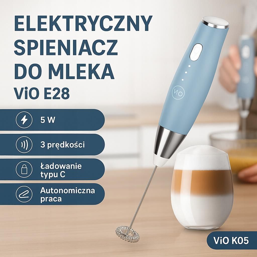 Elektryczny Spieniacz Do Mleka ViO K05 - Różdżka Do Ręczny Mocny Niebieski - Obrót o 360 ViO K05 to nowoczesny elektryczny spieniacz do mleka w eleganckim niebieskim kolorze, który pozwala cieszyć się ulubioną kawą z perfekcyjną mleczną pianką każdego dnia. To praktyczne urządzenie sprawdzi się zarówno w domu, jak i w biurze, ułatwiając przygotowanie napojów i lekkich dań. Dzięki kompaktowej konstrukcji i ergonomicznemu kształtowi spieniacz ViO K05 jest wygodny w użyciu, a jego mocny silnik w połączeniu z końcówką ze stali nierdzewnej gwarantuje szybkie i równomierne ubijanie. Niezależnie od tego, czy przygotowujesz cappuccino, latte, kakao czy sos, urządzenie pomoże uzyskać idealną konsystencję. ViO K05 – elektryczny spieniacz mleka do domu i kuchni To nie tylko sprzęt do kawy, ale także praktyczne narzędzie kulinarne. Ręczny spieniacz do mleka ViO K05 oferuje trzy tryby pracy, które umożliwiają dopasowanie intensywności do wybranego zadania – od delikatnej pianki po szybkie mieszanie składników. Wbudowany akumulator z możliwością ładowania przez USB Type-C zapewnia wygodę użytkowania i eliminuje potrzebę wymiany baterii. Dzięki temu urządzenie jest zawsze gotowe do pracy i można je łatwo zabrać w podróż. Zalety elektrycznego spieniacza ViO K05 360° obrotów – szybkie i równomierne spienianie bez wysiłku. Uniwersalne zastosowanie – idealny nie tylko do mleka, ale także do jaj czy sosów. Trzy prędkości pracy – możliwość wyboru odpowiedniego trybu. Wbudowany akumulator – długie użytkowanie bez przerw. Ładowanie USB Type-C – szybkie i nowoczesne rozwiązanie. ViO K05 to połączenie funkcjonalności, elegancji i wygody. Dzięki niemu codzienne przygotowywanie kawy czy innych napojów stanie się przyjemnym rytuałem z nutą profesjonalizmu.