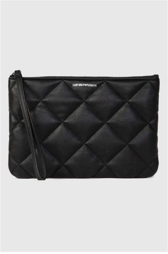 Pikowana saszetka damska EMPORIO ARMANI w kolorze czarnym. Z przodu subtelne logo w kolorze srebrnym. Z tyłu wsuwana kieszonka. Saszetka zapinana na zamek. Krótki uchwyt. Zapakowany w pudełko firmowe. Wszystkie produkty z oferty outfit.pl są oryginalne i pochodzą bezpośrednio od producentów lub sprawdzonych dystrybutorów.
