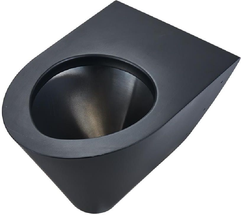 Czarna muszla WC Faneco ze stali szlachetnej Materiał: stal nierdzewna 304 Malowana proszkowo na czarno Wykończenie: matowa Mocowanie: stelaż przyścienny Grubość materiału elementów misy: 1 mm / 1,5 mm / 2 mm Wymiary: wysokość 380 mm, szerokość 355 mm, głębokość 550 mm Średnica odpływu: Ø 104 mm Waga: 15 kg