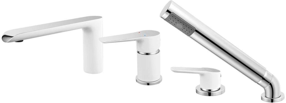 ADORE WHITE/CHROME Adore White/Chrome - bateria wannowa wielootworowa  (BDR11A) Informacje podstawowe: regulator ceramiczny ceramiczny przełącznik wanna/natrysk wyciągana rączka natrysku wylewka z perlatorem M24x1 wężyki podłączeniowe w komplecie montaż stojący biały-chrom Wyciągana rączka …