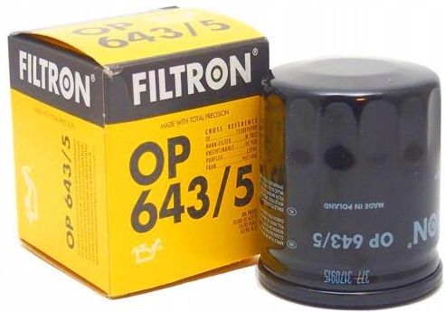 FILRE OLEJU FIRMY FILTRON O NR. OP643/5 Parametry: Wysokość [mm] : 79 Wymiar gwintu : M 20x1,5 Średnica zewnętrzna [mm] : 75