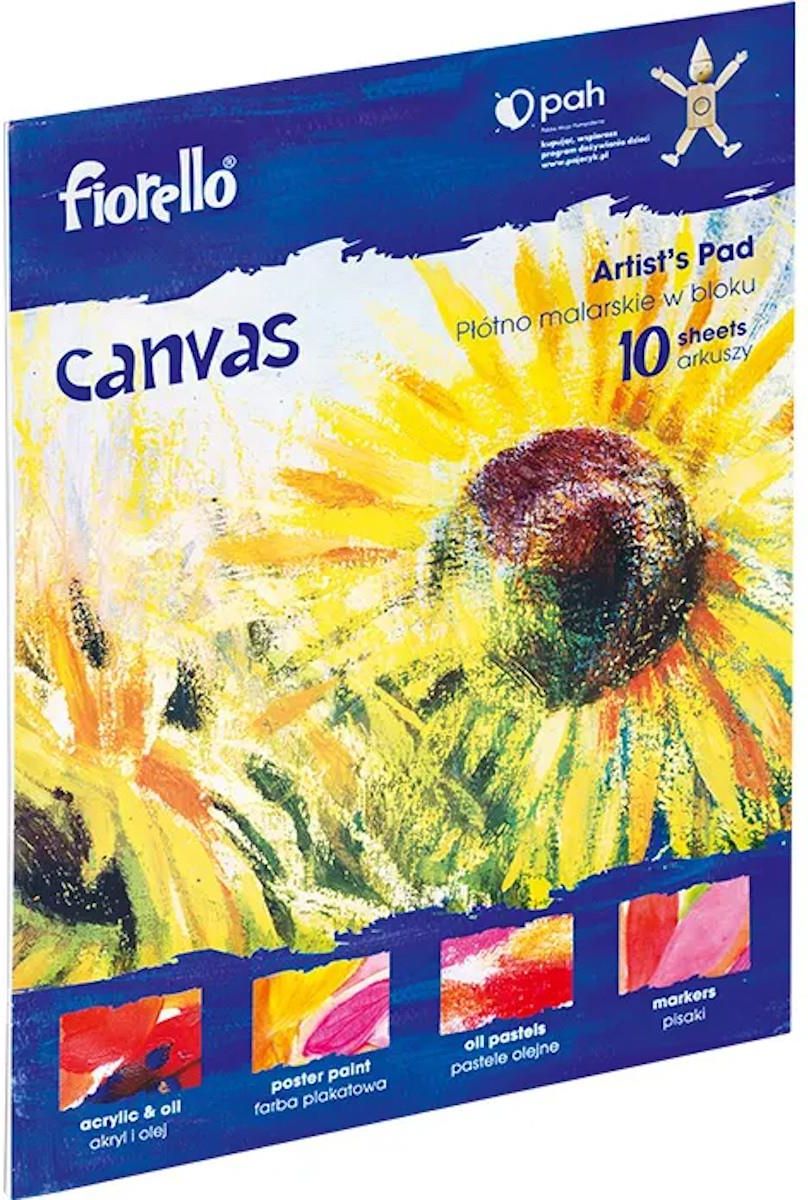 Płótno malarskie Fiorello GR-F1824. Wymiary: 457 x 610 mm / 18 x 24 Gramatura: 300 g/m2 Ilość: 10 arkuszy Płótno bawełniane, gruntowane akrylem Idealne jako tło pod obrazy wykonywane farbami olejnymi oraz akrylowymi Całość w formie praktycznego bloku klejonego jednostronnie