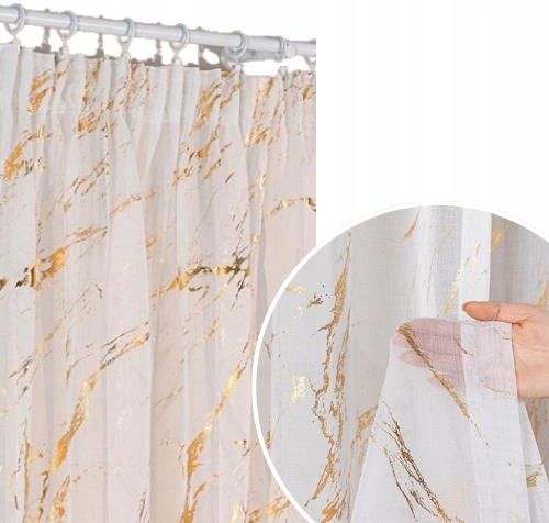 Firana na taśmie żabki tunel biała złota marmurek 140x250cm salon sypialnia 1784080595 Warszawa