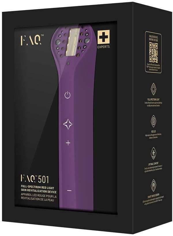 TECHNOLOGIA ZORIENTOWANA NA REZULTATY DLA POPRAWY WYGLĄDU SKÓRY FAQ™ 501 wykorzystuje technologię pełnego spektrum światła czerwonego, która może pomóc w rozwiązaniu różnych problemów skórnych - takich jak nieregularności pigmentacji, drobne zmarszczki, zaczerwienienia, przebarwienia lub nierówna tekstura skóry. Dzięki minimalnemu czasowi przestoju i możliwości zaobserwowania początkowych zmian już po kilku zastosowaniach, technologia ta wspomaga funkcjonowanie skóry, pomaga ją zregenerować i pozostawia cerę wyglądającą świeżo. Nieskomplikowana metoda widocznej optymalizacji wyglądu skóry. ZALETY Zmniejsza widoczność drobnych linii i zmarszczek, zapewniając jędrniejszą, młodziej wyglądającą cerę. Wyrównuje koloryt skóry i redukuje nierówności pigmentacyjne Poprawia teksturę skóry i widocznie zmniejsza widoczność porów Łagodzi zaczerwienienia i podrażnienia skóry Zwiększa energię komórek i wspiera zdrowie skóry Pozostawia skórę promienną, odświeżoną i wyraźnie zrewitalizowaną DANE TECHNICZNE Pełne spektrum światła czerwonego: 590-1200 nm + czerwone światło LED (650 nm) Elegancka, ergonomiczna konstrukcja, możliwość dostosowania i odpowiednia dla wszystkich rodzajów skóry Poręczny, lekki i kompaktowy - idealny w podróży Możliwość ładowania przez USB 2 lata ograniczonej gwarancji Nie wymaga części zamiennych ZAKRES DOSTAWY FAQ™ 501 Okulary ochronne i torba do przechowywania Kabel USB do ładowania Skrócona instrukcja obsługi Instrukcja obsługi