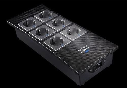 Terminal zasilający z pasywną filtracją wykorzystującą firmowe rozwiązanie o nazwie Formuła GC-303 redukującą fale elektromagnetyczne generowane wewnątrz obudowy oraz technologię NCF. Wyposażony w sześć gniazd FT-SDS NCF. Gniazdo wejściowe to rodowany FURUTECH FI-09 NCF Wewnętrzne okablowanie przewodami solid core FURUTECH Alpha-22. Furutech Axial Locking Sysytem – system tłumienia rezonansów zmniejsza dziesięciokrotnie wpływ drgań na pracę terminalu. Obudowa wykonana w całości z aluminium obrabianego na maszynach CNC. Górna powierzchnia pokryta warstwą włókna węglowego.