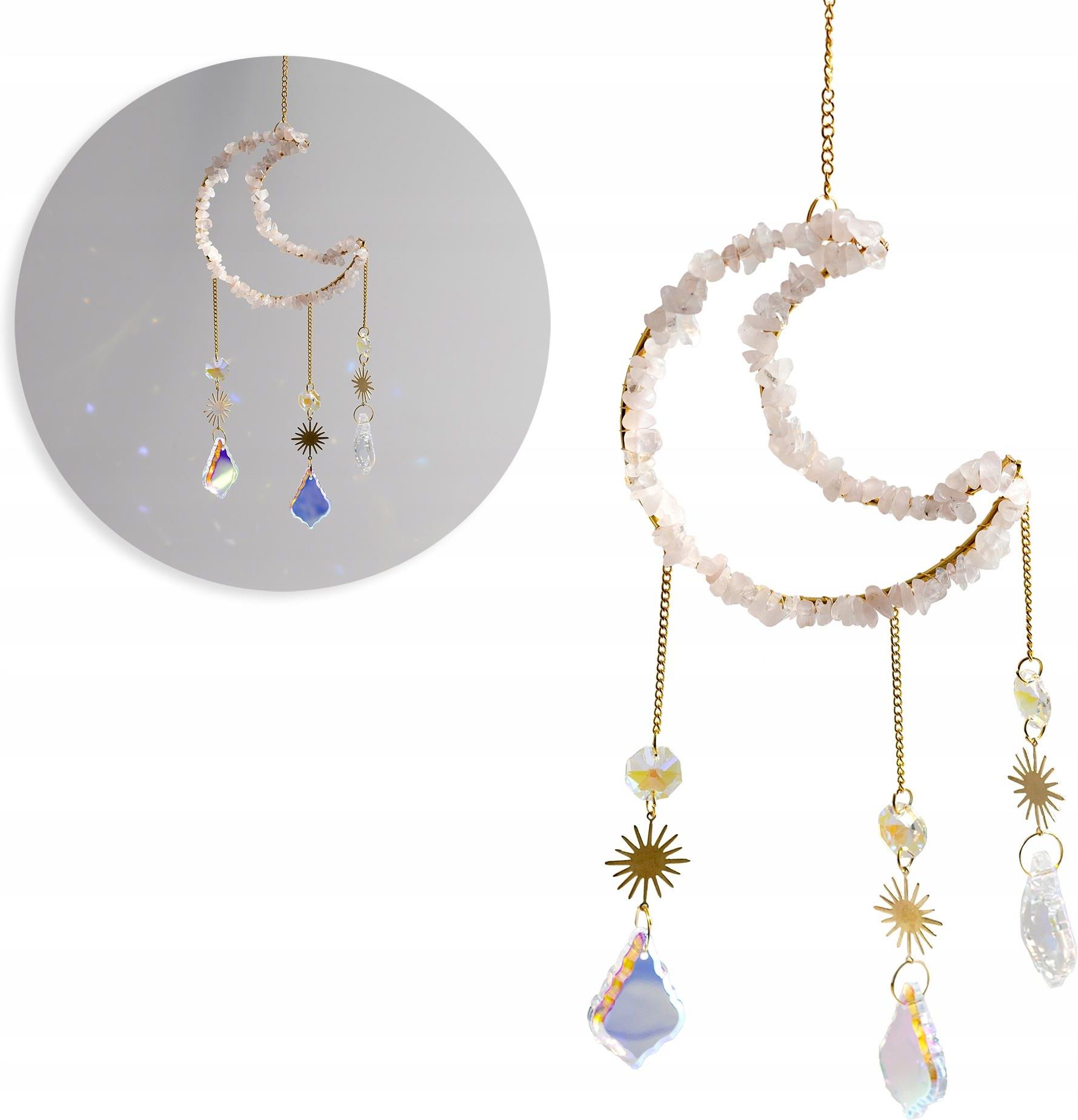 Gemour Łapacz Słońca Snów Kwarc Różowy Wspaniały Zawieszka Ozdobna Księżyc Migocze Warszawa