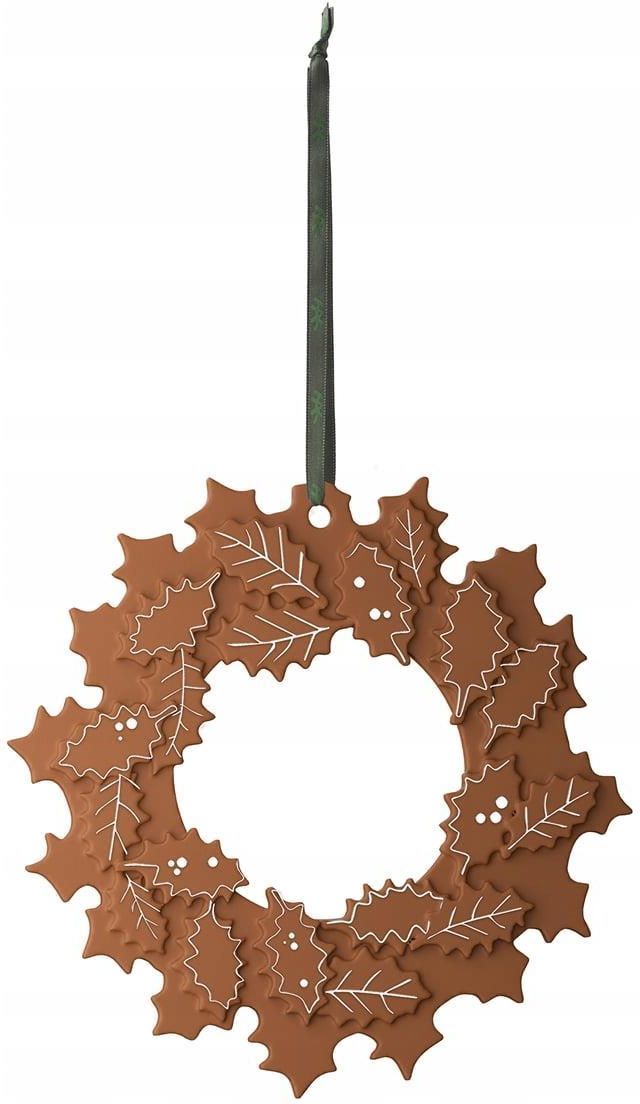 Świąteczna zawieszka w kształcie piernikowego wieńca Gingerbread od firmy Kähler przypomina o pięknych tradycjach bożonarodzeniowych. Wszystkie jej detale zostały wykonane z szczególną starannością. Gingerbread to nowoczesna zawieszka z piernika w której połączenie uroczego wyrazu i tradycyjnego ręcznego projektowania spotyka się z ciepłem i przytulnością w ciemne, grudniowe wieczory. Piernik to prawdziwy klasyk świątecznego ciasta, który w wielu krajach występuje w różnych wersjach. Piernikowy wieniec od marki Kahler to gwarancja wyboru uroczej i tradycyjnej ozdoby, która wprowadzi ciepło do wnętrz naszych mieszkań. Najważniejsze cechy produktu to: tradycyjny wieniec piernikowy, jako urocza dekoracja uzupełnienie kolekcji piernikowych świeczników idealny pomysł na prezent wieniec z ostrokrzewu Wieniec bożonarodzeniowy przez cały grudzień będzie pięknie wyglądał na ścianie, oknie lub drzwiach. Tradycja ozdabiana wiankami na Boże Narodzenie sięga daleko wstecz, gdzie głównym materiałem często był ostrokrzew odtwarzany tutaj w kamionce. Wysokość: 11,5 cm