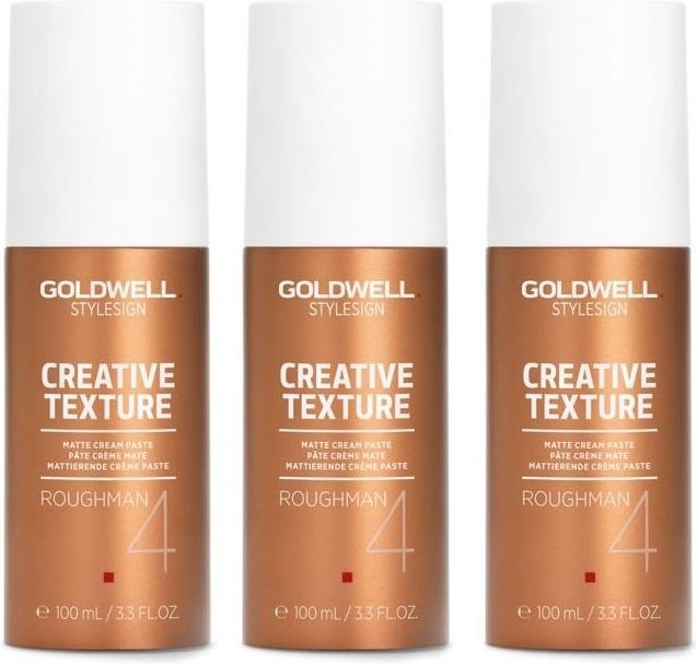 W zestawie znajdują się trzy pasty matujące Goldwell StyleSign Texture Roughman, każda o pojemności 100ml. Goldwell StyleSign Texture Roughman to pasta do matujących stylizacji. Zapewnia całkowitą kontrolę fryzury i nadaje natychmiastowe utrwalenie na cały dzień. Odpowiednia do wszystkich rodzajów włosów. Dodatkowo zapewnia ochronę koloru włosów farbowanych.