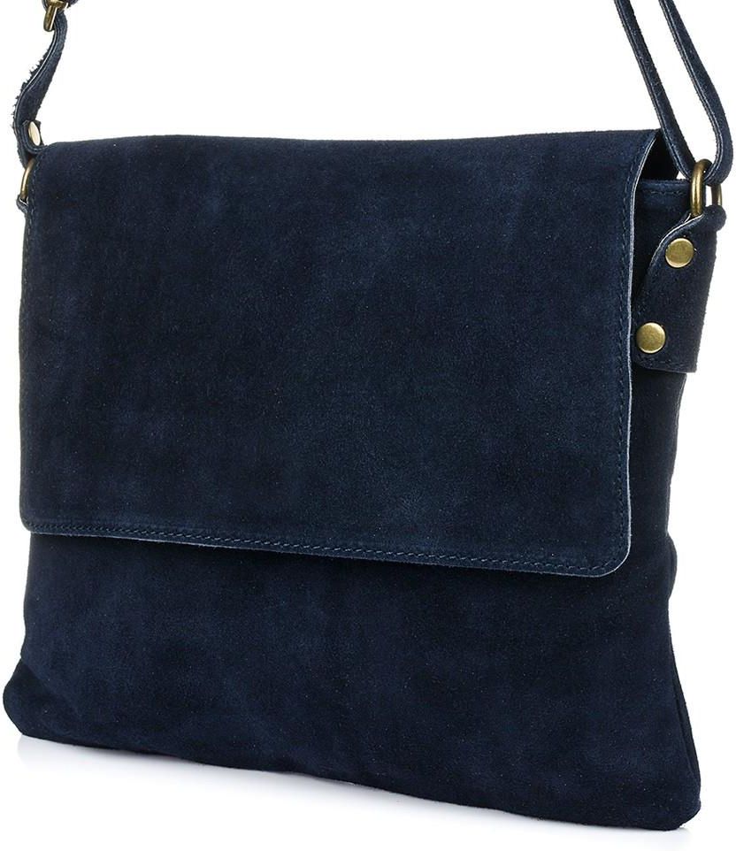 Granatowa Włoska Torebka damska zamszowa listonoszka z klapą B67 Warszawa