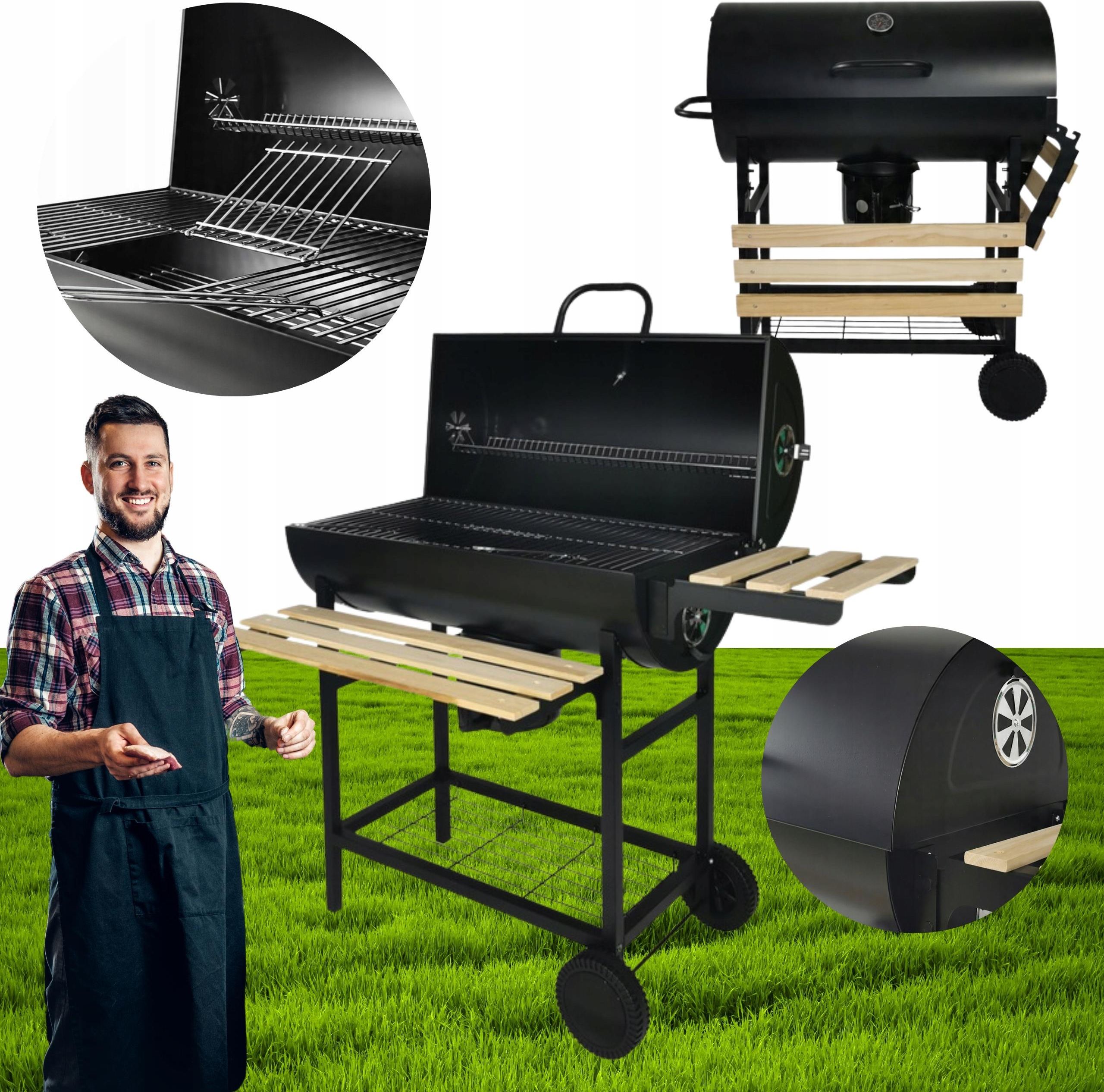 GRILL WĘGLOWY OGRODOWY Z 2 RUSZTAMI NA KÓŁKACH BBQ1008 TERMOMETR PÓŁKI Warszawa