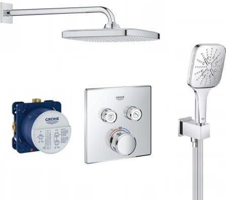 Zestaw natryskowy termostatyczny Grohe Grohtherm SmartControl 29124000 , słuchawka Grohe RAINSHOWER SMARTACTIVE 3 strumienie, deszczownica Grohe Tempesta 25 cm - 12420 • GROHE Bateria podtynkowa termostatyczna - element zewnętrzny Grohtherm SmartControl 29124000• GROHE Uniwersalny element …