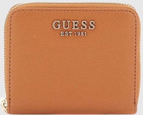 Brązowy portfel damski marki Guess, wykonany ze skóry ekologicznej. Zamykany na zamek, wewnątrz zamykana kieszeń na bilon, jedna przegroda i 4 miejsca na karty.