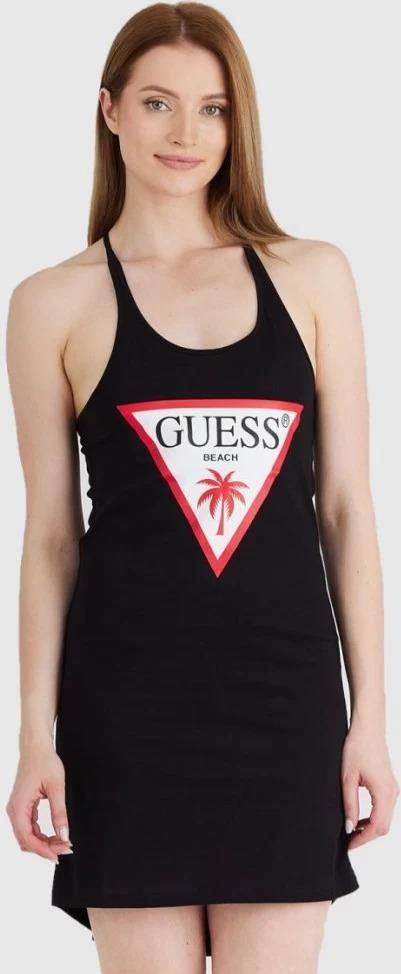 Sukienka Guess w kolorze czarnym z wyciętymi plecami oraz z nadrukiem z logo. Pranie ręczne w chłodnej wodzie, nie suszyć w suszarce bębnowej, nie stosować wybielaczy. ROZMIAR I DOPASOWANIE: wzrost: 175 cm biust: 90 cm talia: 65 cm biodra: 93 cm Modelka ma na sobie sukienkę w rozmiarze S. Wszystkie produkty z oferty outfit.pl są oryginalne i pochodzą bezpośrednio od producentów lub sprawdzonych dystrybutorów.