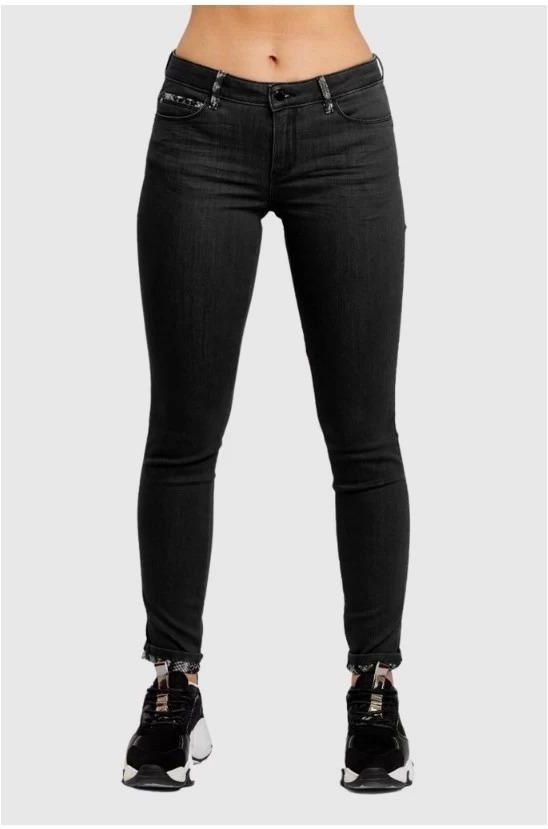 GUESS - CURVE x SHAPING FIT x MID RISE x SKINNY LEG Damskie jeansy GUESS w kolorze czarnym, wykończone detalami we wzór pytona. Wyściełane ciepłą, aksamitną w dotyku powłoką również we wzór pytona. Krój dopasowany, modelujący. Średni stan, wąskie nogawki. Zapinane na zamek i guzik. Z przodu trzy, z …