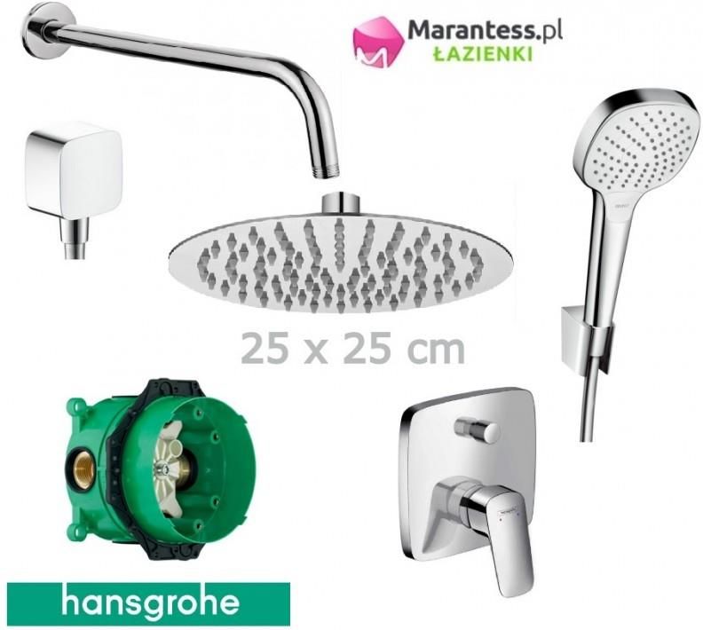 Hansgrohe Logis + Croma Select E + Hydroland 25x25 cm System prysznicowy do montau podtynkowego, z bateri podtynkow Logis marki Hansgrohe. Zestaw kompletny - gotowy do montau W skad zestawu wchodz: HANSGROHE iBox universal DN20/DN15 - puszka podtynkowa HANSGROHE Logis bateria wannowa podtynkowa chrom / element zewntrzny 71405000 HANSGROHE Croma Select E Vario / Porter S zestaw prysznicowy chrom 2642540 ( Gwka prysznicowa Croma Select E Vario 3jet, Uchwyt prysznicowy Porter'S, Isiflex w prysznicowy z powierzchni metaliczn 1,25m ) HANSGROHE przycze ktowe 26457000 Deszczownica ze stali nierdzewnej Hydroland, typu ULTRASLIM, okrga , rednica 25 cm Rami cienne 40 cm Hydroland, stal nierdzewna