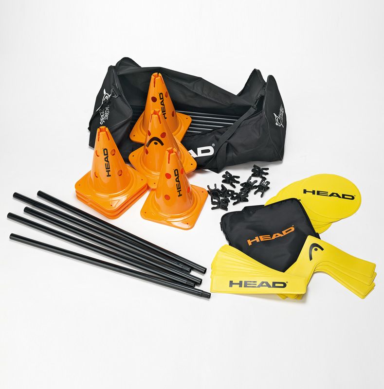 Zestaw trenerski HEAD Coaching Pack linie pachołki Trening tenisowy to coś więcej niż forehand. COACHING PACK, zapewni wszystko czego potrzebujesz aby jak najlepiej wyszkolić Twoich zawodników. COACHING PACK to idealne narzędzie pomagające przy wszystkich ćwiczeniach: od tenisa, przez fitness, po koordynację. W skład zestawu wchodzi 6 dużych pachołków, 12 słupków z 8 klipsami, 12 elementów linii kortu, 4 narożniki, 6 tarcz, 1 torba, 1 plakat HEAD coaching, a wszystko zaprojektowane przy udziale trenerów, tak aby każdy z elementów był przydatny. Najwyższą jakość wykonania zapewnia marka HEAD.